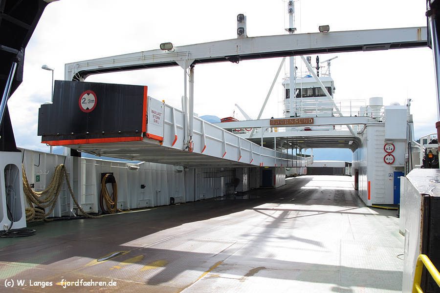 1992/93 umfangreicher Umbau 1993 - 2007 Kristiansund - Bremsnes 12.2007 Havarie mit Grundberührung und Schäden am Rumpf, umfangreiche Reparatur und Umbau bis 2008 2003 - 12.2009 Kristiansund - Bremsnes 12.2009 - 02.2010 Reservefähre: Halsa - Kanestraumen bzw. Solavågen - Festøya 09.2010 - 12.2019 Tømmervåg - Seivika 01. - 04.2020 Kvanne - Røkkum (Rykkjem) Reservefähre z.B. 07.2020 Rysjedalsvika - Rutledal - Krakhella 1.1.2021 - 12.2024: Festvåg - Misten aufliegend |