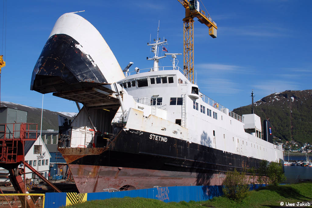 ![]() MF Stetind ved Kaarbø verksted i Harstad 18.9.2008 Foto Olaf Horsevik |