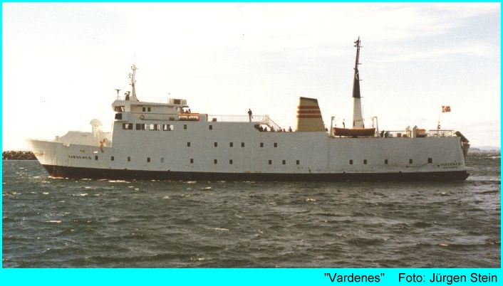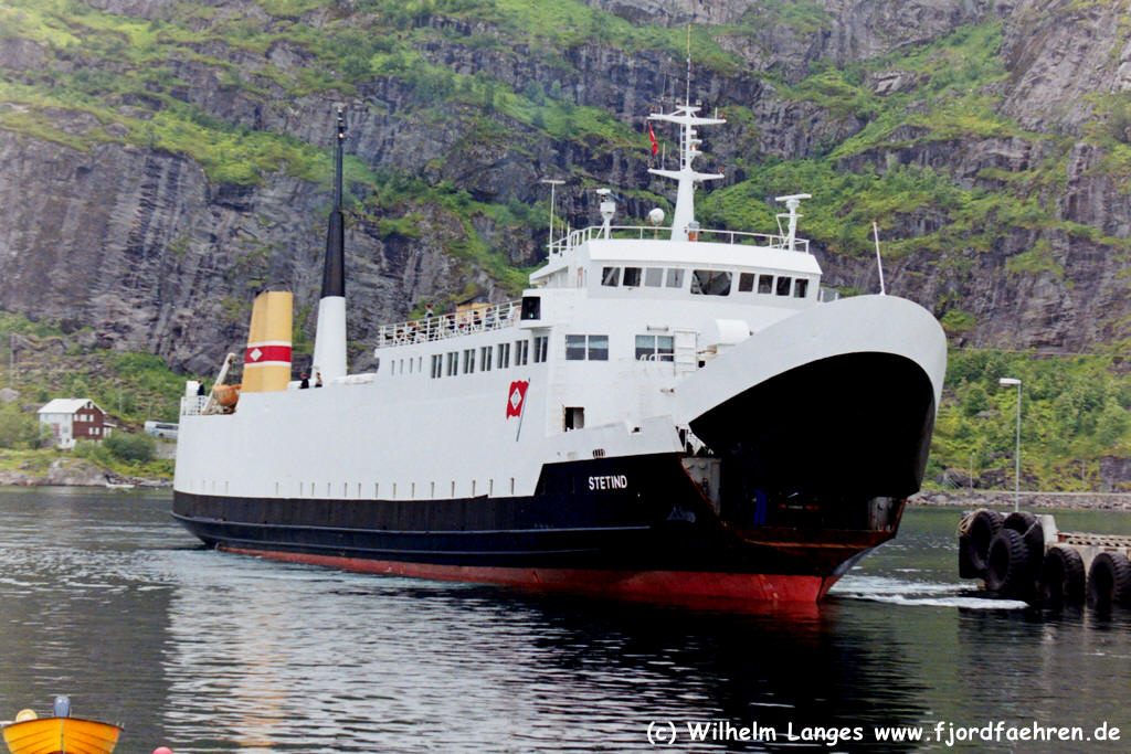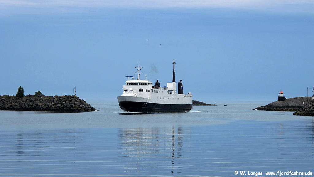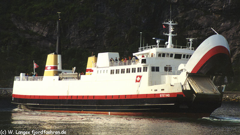 1977 - 1978 Stavanger - Skudeneshavn 1978 - 1988 Mekjarvik - Skudenshavn 1984 Verlängerung um 12 m 1988 - 1994 Bognes - Lødingen 1995 - 1996 Moskenes - Bodø 1996 Einbau neuer Motore und Modernisierung Myklebust Mek. Verksted, Gurskebotn 1996 Skutvik - Skrova - Svolvær 1997 Bodø - Værøy - Røst - Moskenes und Svolvær - Skutvik 1996 - 1999 auch: Moskenes - Bodø - ab 1999 als Reservefähre 1999 - 2006 Svolvær - Skrova - Skutvik und Reservefähre 2008 (Sommer) Hansnes - Karlsøy - Vannøy Sommer 2012 04. - 08.2012 Stangnes - Sørrollnes für Tranøy 06.2012 - ... Moskenes - Bodø 01.2013 - 02.2013 Stangnes - Sørrollnes/ und wieder 05.2013 07.2013 als Ersatz für die Lødingen: Bognes - Lødingen - Sommer 2016 in Tromsø liegend - 2017 - ...: Sommerfähre Andenes - Gryllefjord (05. - 09.) |