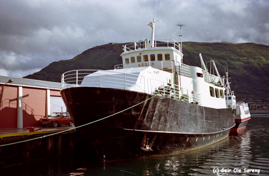Ablieferung 30.4.1969 1969 - 1970 verchartert z.B. - Kvalsund - Stallogargo - Bognes - Lødingen (Sommer 1969) für Nord Ferjer - Bognes - Skarberget (Sommer 1970) 08.1970 - 1982 Hamneidet - Skjervøy - Nikkeby (Laukøya) - Lauksundskaret (Arnøya) 1982 - 1991 (Stornes - Bjørnerå -) Fenes - Sandsøy - Bjarkøy auch: Vikran - Larseng 1991 - 1992 aufgelegt 1992 - 2000 (?) Hansnes - Karlsøy - Stakkvik 2000 (?) - 2003 Reserveschiff 2003 - 2005 unklar Verkauf 09.2005, Namensänderung 2006 2005 - 2007 Service-Schiff Basis Tromsø 01.2008 verkauft nach Russland lt. Equasis: Status of ship : No Longer updated by (LRF) IHSF - Einsatz in der Fischaufzucht - Infolink - in der Pechenga Bay / Russland ab 2010 kein LRF (Lloyds Register) Update mehr - ca. 2015/17 in Pechenga an Land gesetzt und abgebrochen |