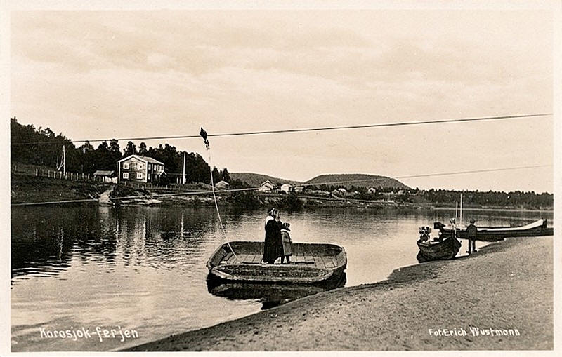 ![]() Karasjok fergested fotografert fra østsiden av elva en søndag i august 1941. https://digitaltmuseum.no/0210115764846 - CC BY-SA |