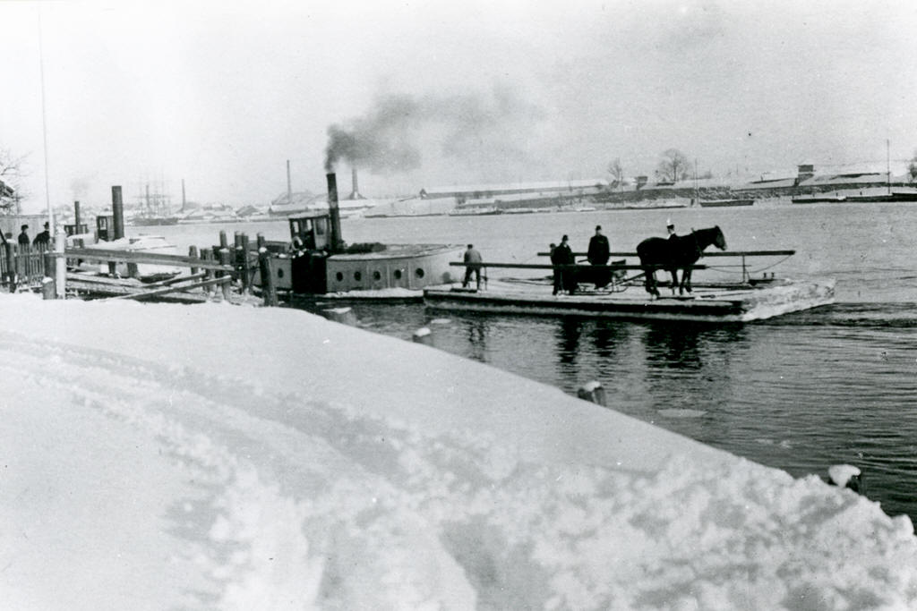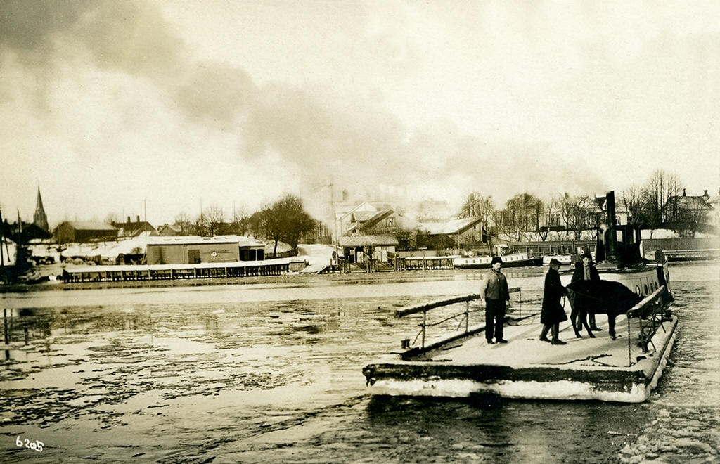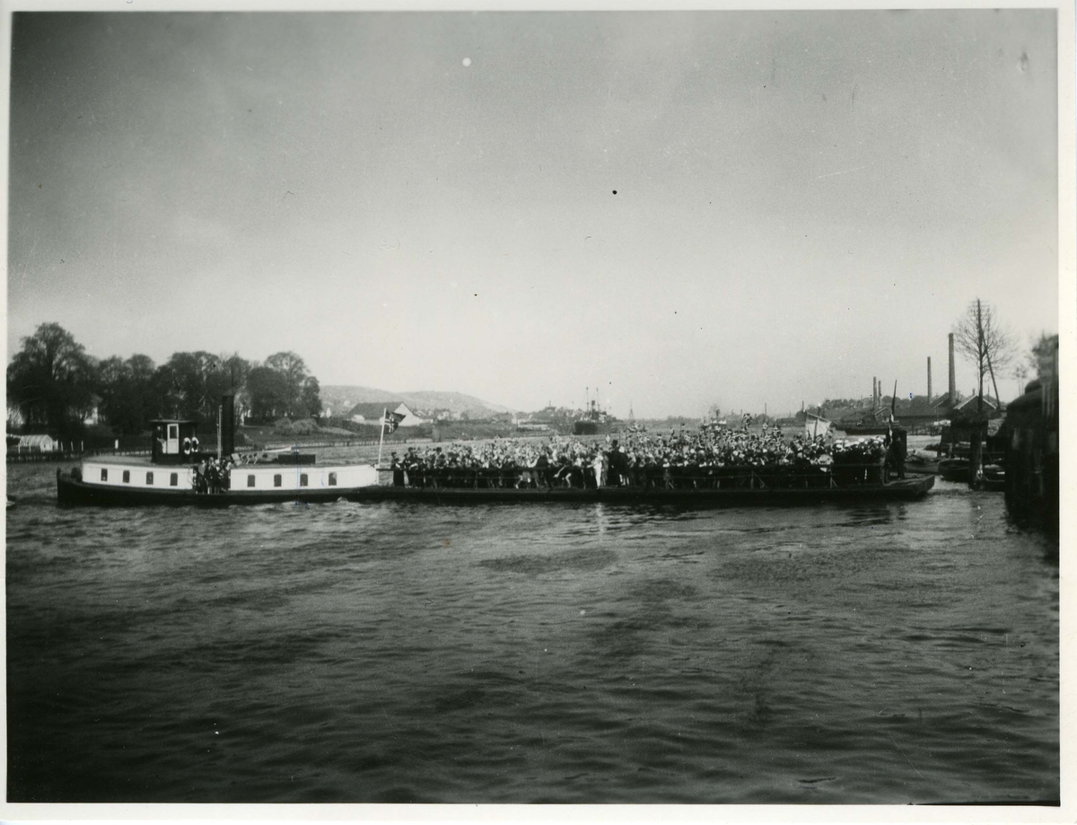 - Gamlebyen ca. 2 antrieblose Fährprahme, von Motorbooten gezogen - ferjeprammer, trukket av en motorbåt |