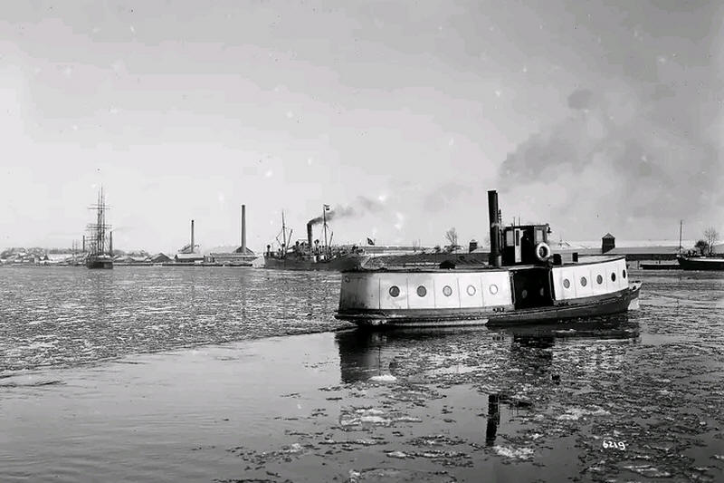 2" - Bj. 1876 -> erkennbar an den je fünf runden Bullaugen / Fenstern nach Einsatz der Motorfähren Verwendung als Passagierschiff |