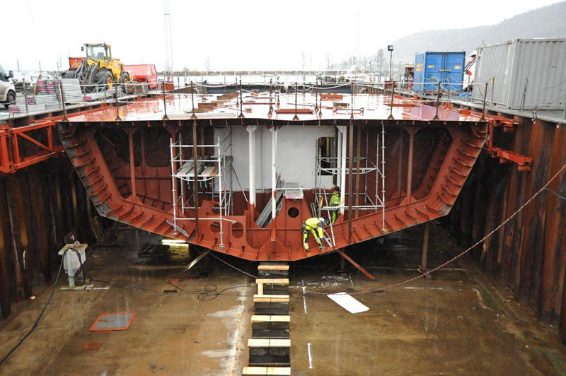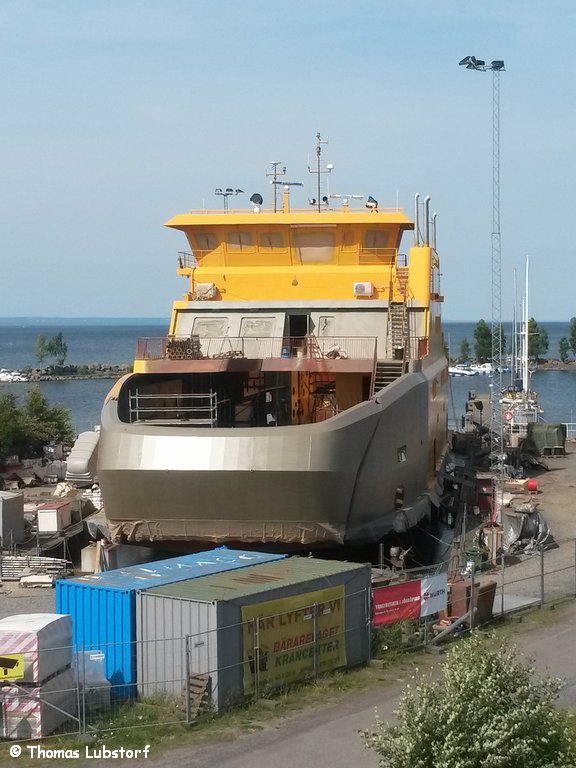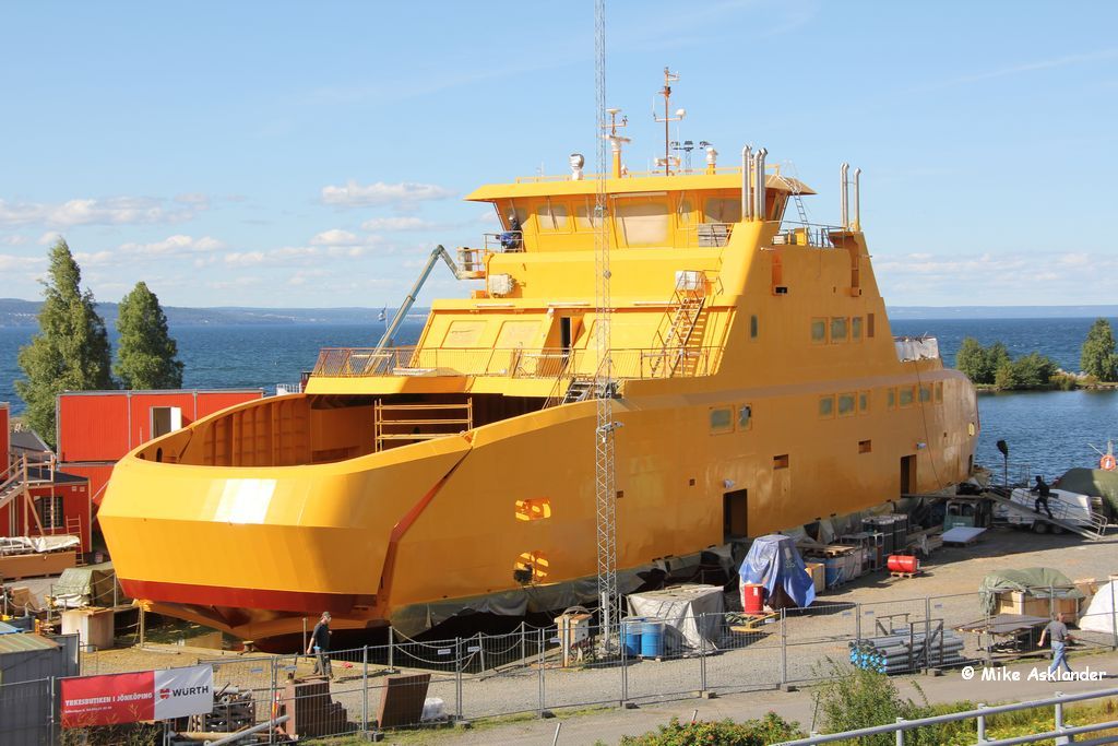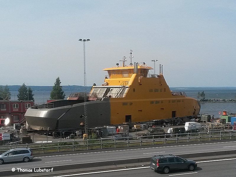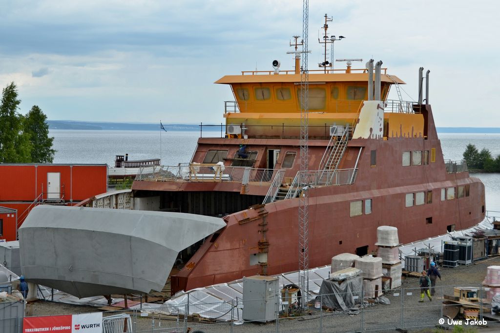 SIQN Antrieb: 4 x Volvo Penta D16MH-650-Diesel mit zusammen 1920 kW - Fertigung der Sektionen in Riga Shipyard, Riga / Lettland Bau.-nr: 1140 - Montage der Sektionsteile in einem Trockendock in Huskvarna |